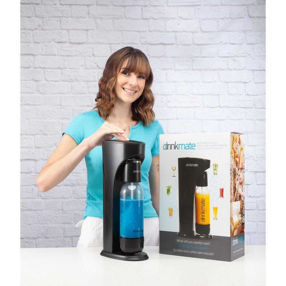 Includes the Drinkmate machine, 1 BPA-free 1 Liter reusable carbonating bottle, one CO2 60L carbonator cylinder, and Fizz Infuser
