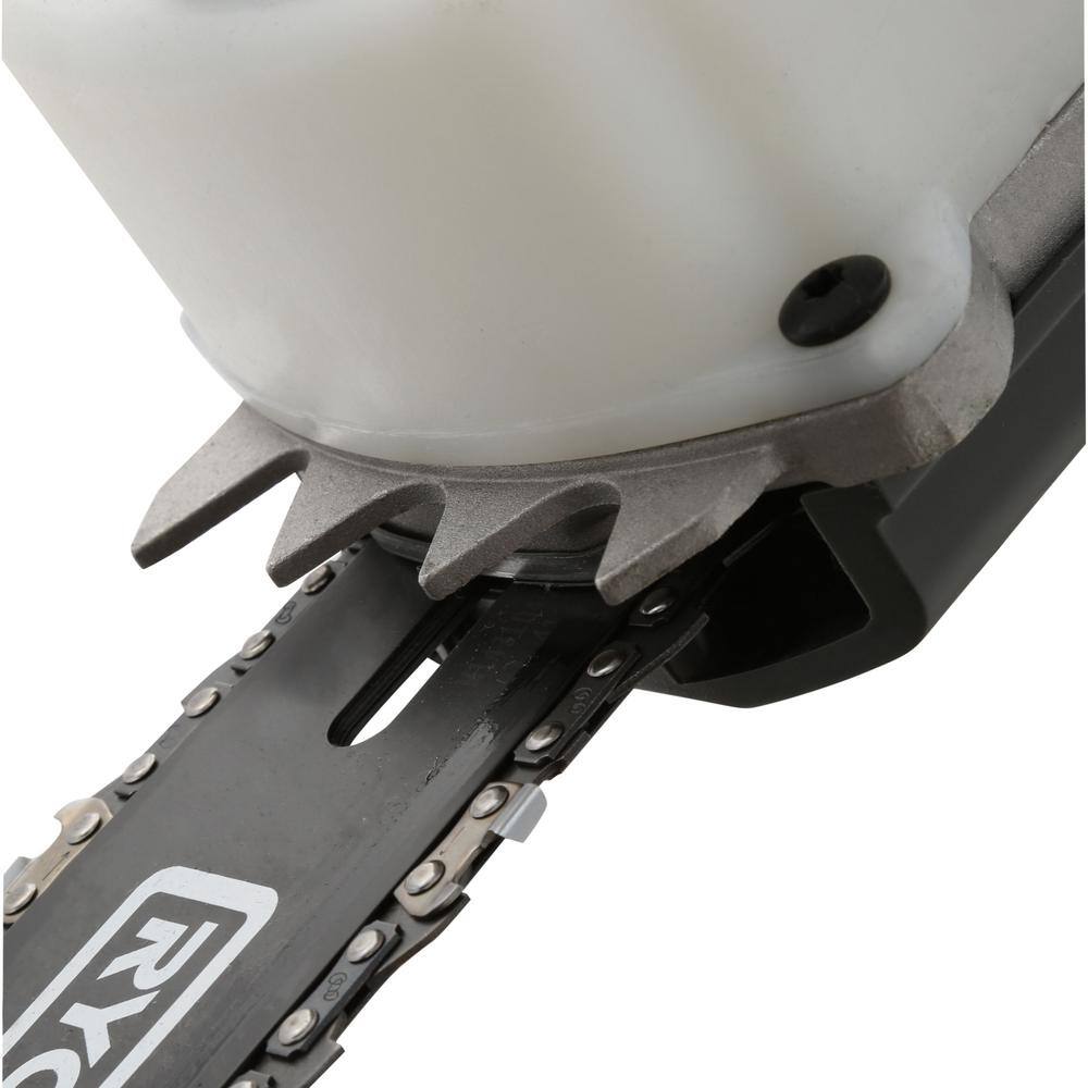The RYOBI Expand-It 10 in. A Pole Saw Attachment features a 10 in. bar and chain that is ideal for pruning and cutting limbs up to 6 in. thick. Reach dead branches or overgrown limbs up to 12 ft. above the ground with the included extension shaft. The angled trimming head allows for user control and more precise cuts. An automatic lubrication feature helps keep the attachment well-oiled during use. This pole saw attachment can be used with RYOBI, Toro, Weed Eater, Troy Bilt, Murray, Poulan Pro and other universal brand fit power heads and trimmers.
